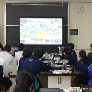 昨年11月に、上溝南中学校の生徒さんのグループが校外学習(市内職場見学)で来館され、そのご縁で今度は上溝南中学校での出前授業となりました。